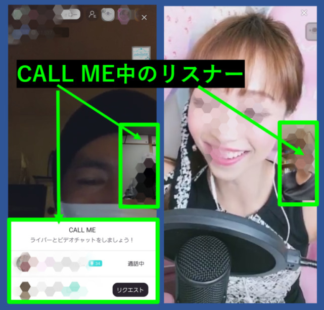 コールミー機能とは、配信中にリスナーさんや他のライバーさんを配信画面内に登場させられる機能です。