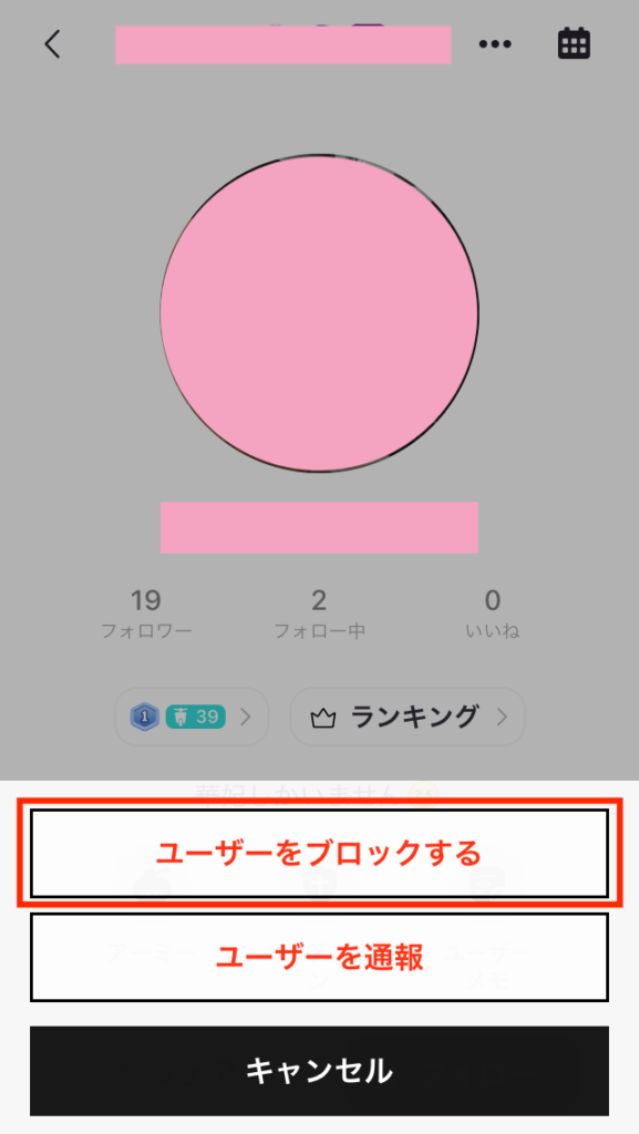 「ユーザーをブロックする」という表示が出てきたら、そちらをタップします。