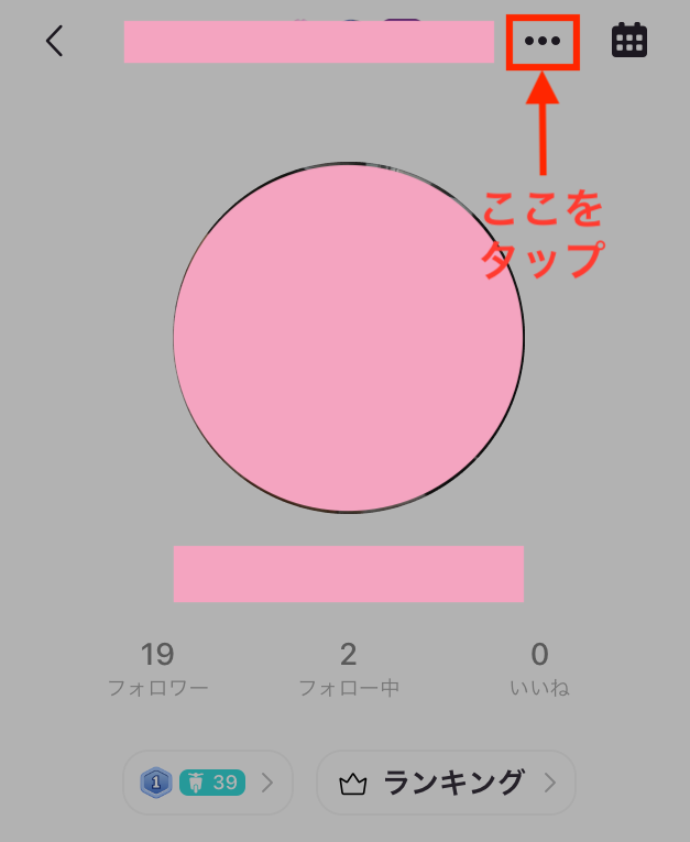 ③プロフィールの詳細ページに飛ぶので、上部右側の「三点マーク」をタップします。