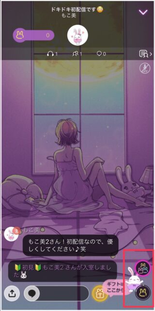 配信画面の右下にあるウサギマークを見てみましょう。