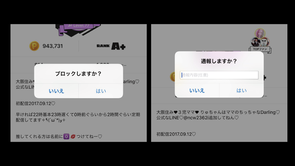 ライバーさんではなく、使用したリスナーさんがアカウント凍結や退会などの重い処分対象になります!!