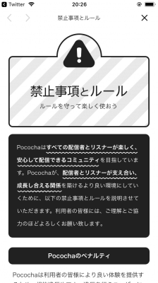 Pococha(ポコチャ)では配信してはいけない内容や、禁止事項が明確に定められています。