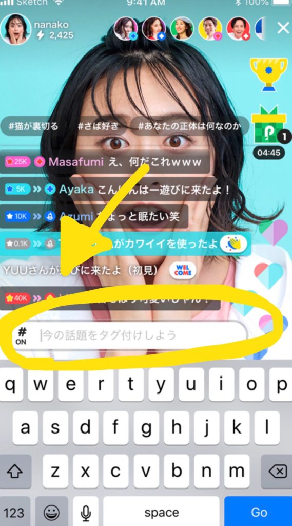 ※2話題タイムライン…タグ付けされた配信が掲載されるタイムラインです!
