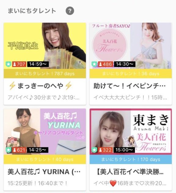 SHOWROOM公式枠には各ジャンルに、『まいにち◯◯』(◯◯には各ジャンルの名前が入ります)という表示エリアがあります。