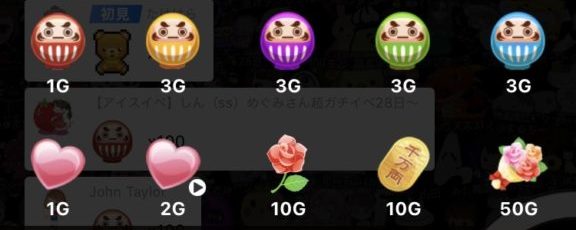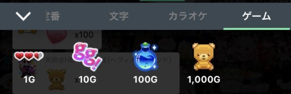 例)ハートは1G=1ポイント、花束は50G=50ポイント